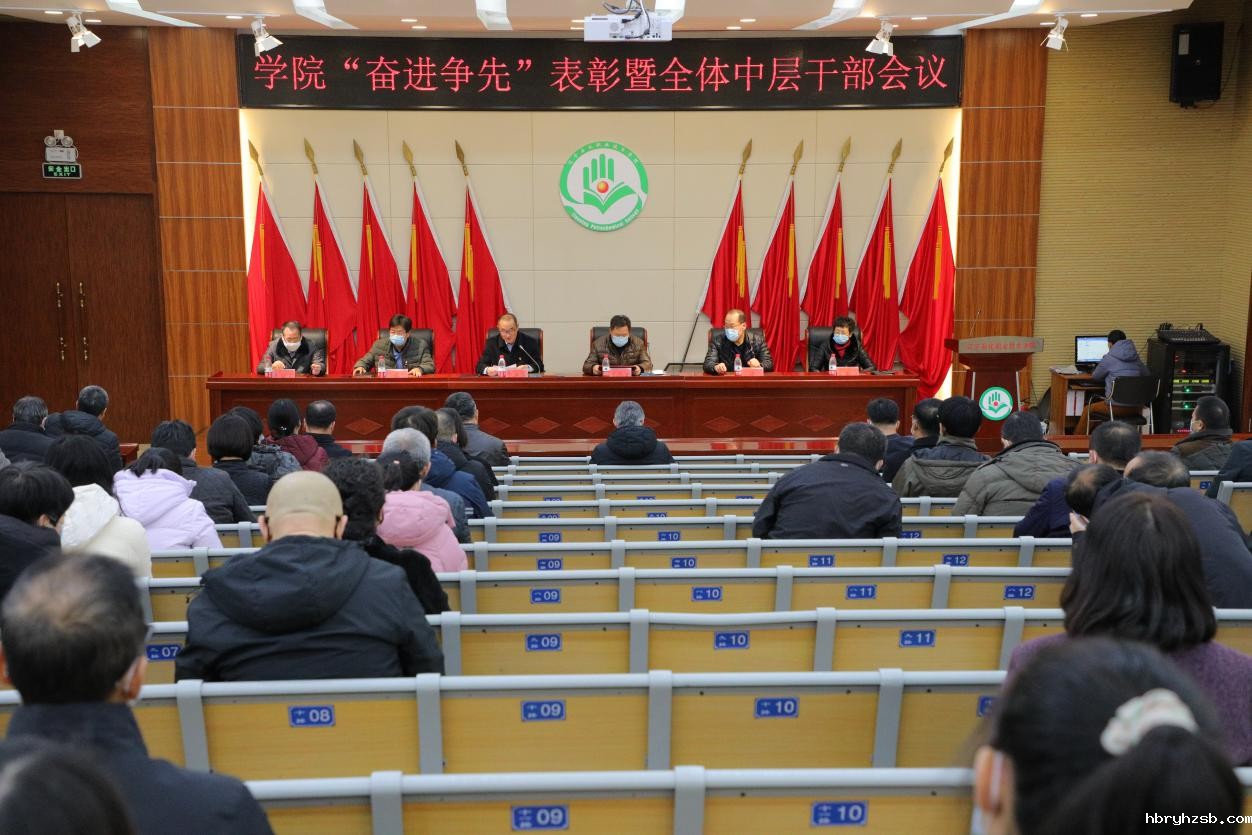 为深入贯彻全省教育系统重点工作推进电视电话会议精神,落实2021年全省教育工作会议要求,3月5日,18luck首页召开“奋进争先”奖表彰暨全体中层干部会议。党委书记李洪军主持会议并讲话,党委副书记、院长于忠党部署2021年新学期重点工作任务。