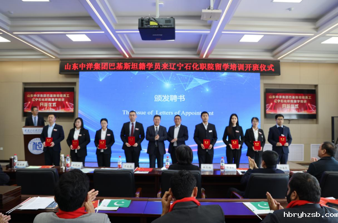 学院党委副书记、院长于忠党致欢迎词。他对辽宁省教育厅、巴基斯坦驻华大使馆、山东中洋集团、唐风国际教育集团对学院长久以来的支持与帮助表示感谢,对参加此次培训的所有巴基斯坦籍留学生表示热烈欢迎。他指出,学院开展对中资企业外籍员工的技术技能培训,全力支持山东中洋集团尼日利亚石化产业园项目建设,是学院学习贯彻落实习近平总书记提出的“一带一路”倡议和党的二十大精神的有力举措,是学院深入贯彻中办、国办《关于深化现代职业教育体系建设改革的意见》精神的重要措施,是学院落实辽宁全面振兴新突破三年行动及推动职业院校“随企出海”的生动实践。学院将充分发挥人才和实习实训条件优势,根据企业安全生产需要,选优配强培训教师队伍,聘请经验丰富企业一线专家,依托学院虚拟仿真实习实训平台,合理安排实训课程,全力做好基于天然气制甲醇工艺流程的技能培训。他表示,学院将以此次培训为基础,坚持“立足石油行业,突出化工特色,服务中资企业,展示职教风采”的建设定位,着力构建校企协同育人、产教深度融合的职业教育“走出去”办学模式,通过开展学历教育、订单式培养、实习实训、员工技能培训等项目,培养一批懂汉语、通文化、精技能的“一带一路”建设者,讲好中国职教故事,传递中国职业教育最新理念,共同打造国际校企合作命运共同体。