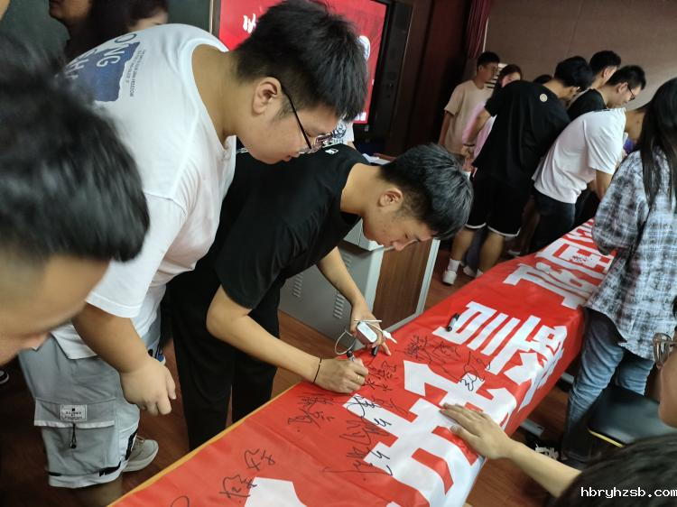 最后,同学们在写有“缅怀先烈,勿忘国耻,警钟长鸣,强我中华”的条幅上郑重地留下自己的姓名,表达自己的爱国情怀。